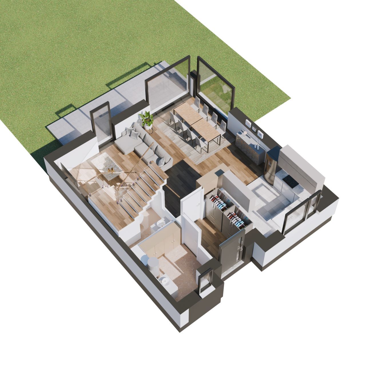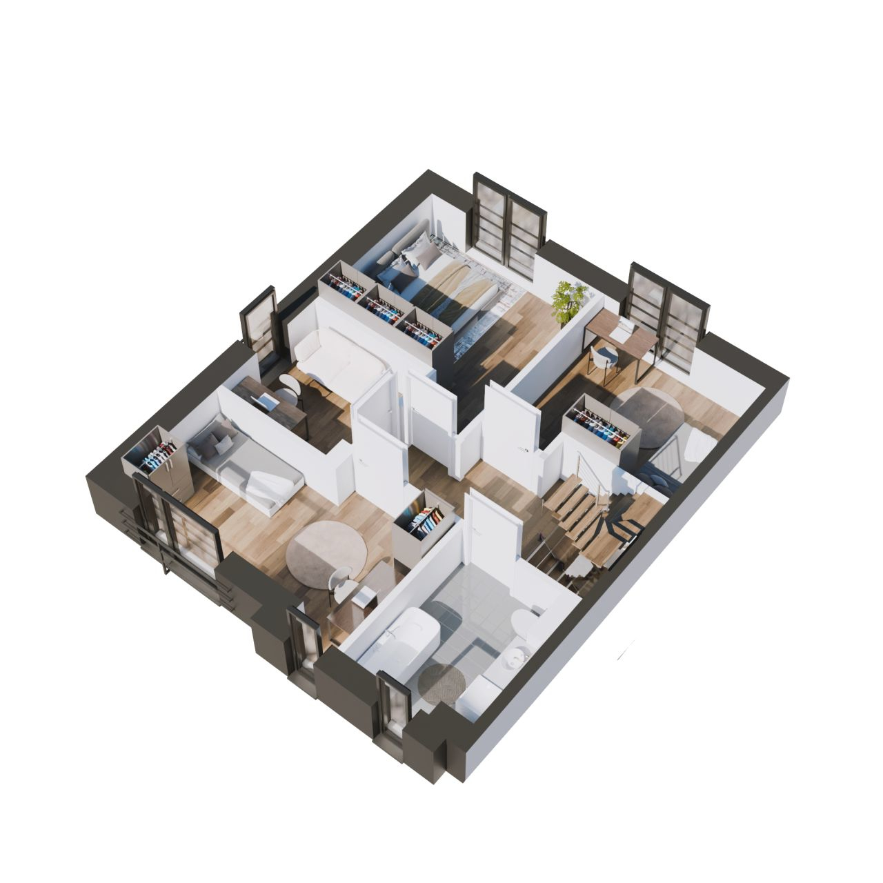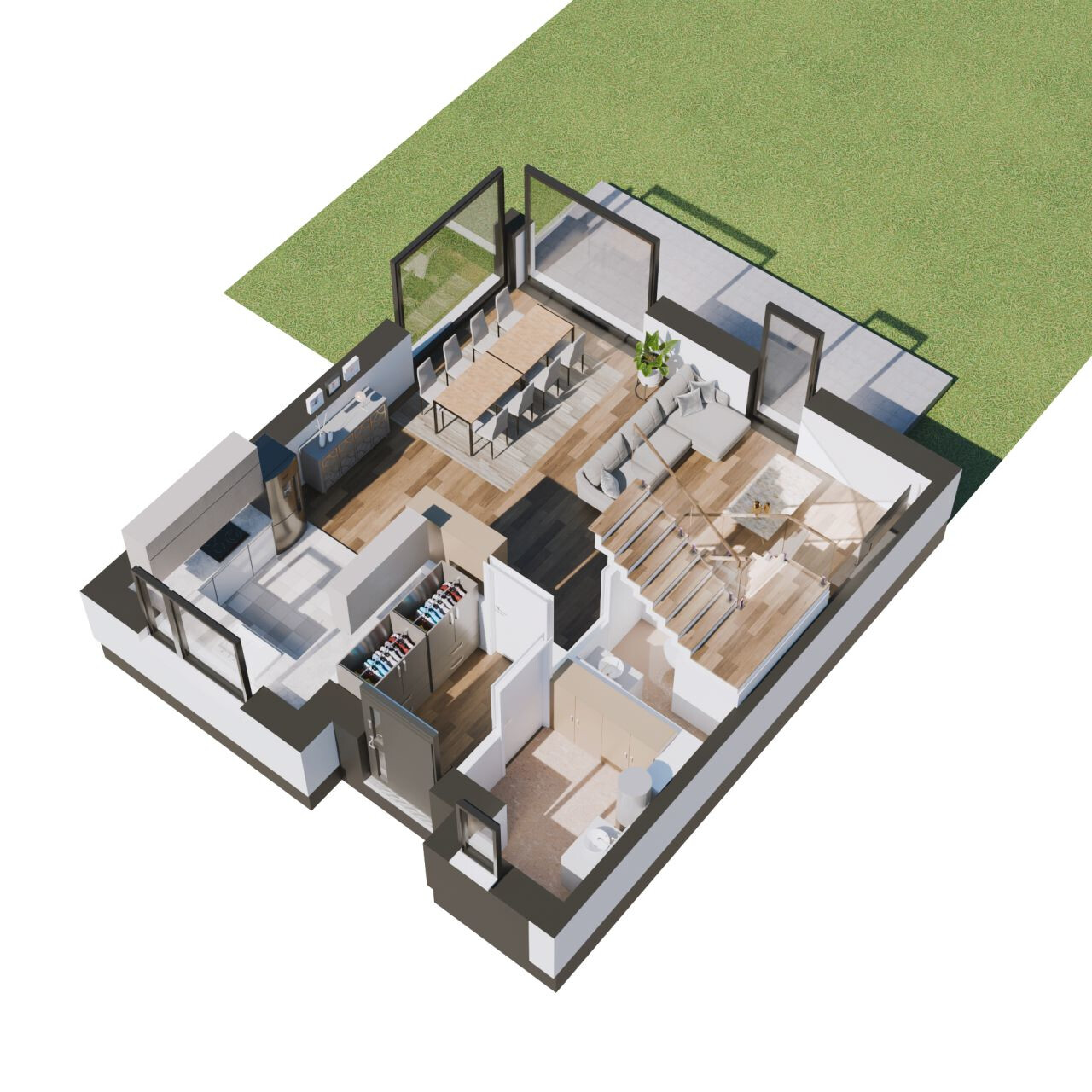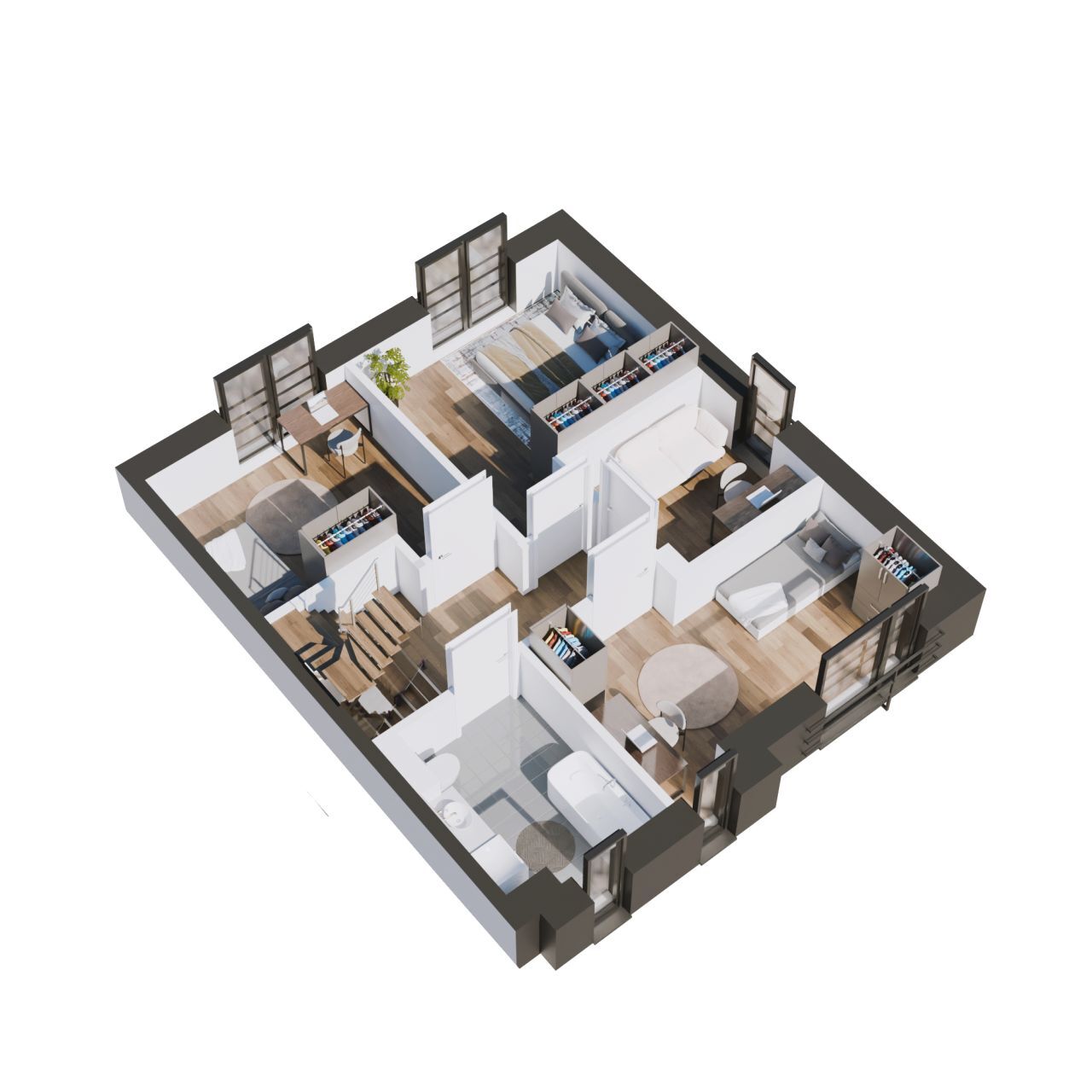 Domy wybudowane będą wg funkcjonalnego projektu. Każdy z nich składa się z kuchni znajdującej się tuż przy salonie i jadalni, trzech sypialni w strefie nocnej na piętrze, gabinetu, łazienki, toalety oraz z pomieszczenia gospodarczego przy wejściu do domu, które można wykorzystać jako garderobę i/lub pralnię. Każdy ogród będzie indywidualnie ogrodzony, a dojście do domu, miejsca postojowe oraz droga wewnetrzna będą wybrukowane.