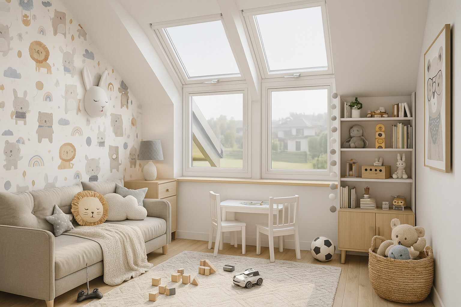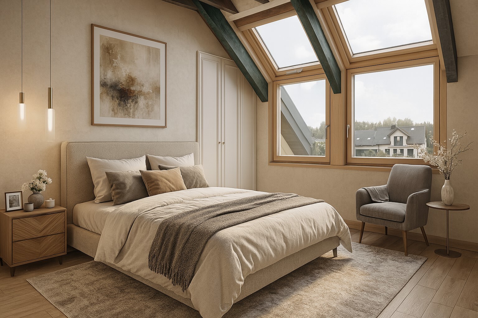 - ściany wykonane z betonu komórkowego, ocieplone styropianem grafitowym